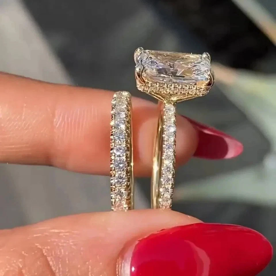 5.00Ct Radiant Cut VS1 Lab Grown Diamond Bridal Set Wedding Ring 14k Yellow Gold