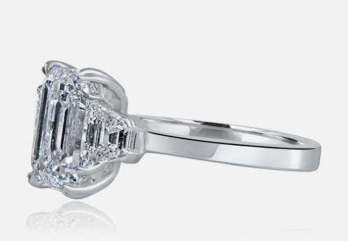 3 Stone IGI 3.05CT E-VVS2 Lab Grown Emerald Cut Diamond Engagement Ring 14k Gold