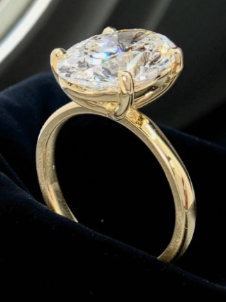 4.00 Ct F VS1 Oval Lab Grown Diamond Ring IGI Certified 14k Yellow Gold