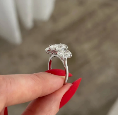 Lab Grown 5 Carat Total Oval F VVS2 Diamond Three Stone Ring / Oval 3 Stone Ring